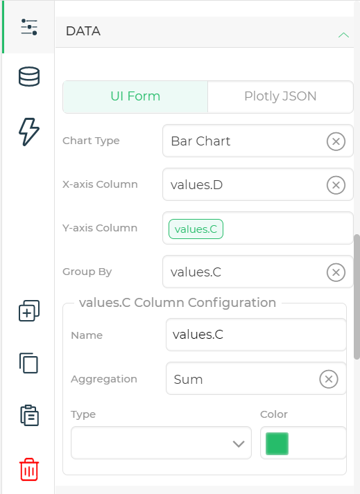 After binding the Airtable data to the charts, now go to charts properties and configure your data. For example which type of graph you want to display, what data you want to display on the graph and on which axis etc.
