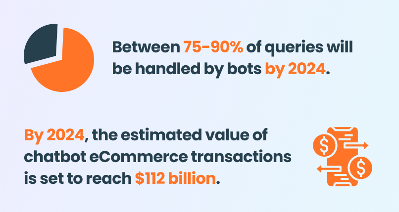 - Between 75-90% of queries will be handled by bots by 2024. (CNBC)