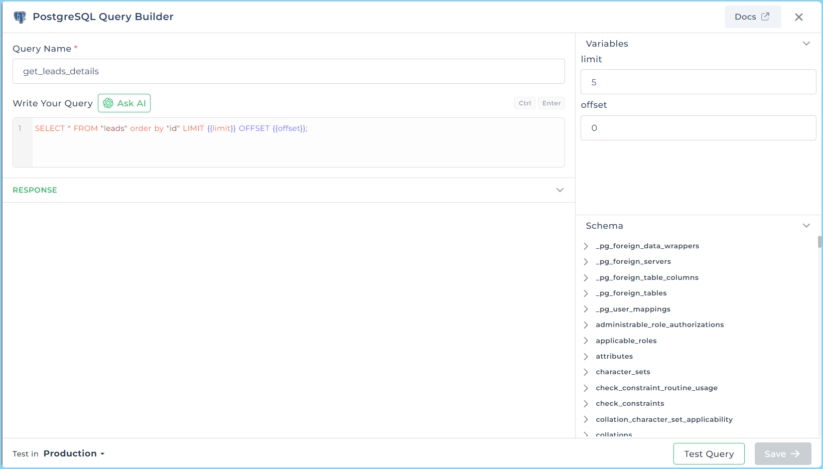 DronaHQ offers an exhaustive list of ready connectors to databases like PostgreSQL, MySQL, MS SQL, MongoDB, etc. (you can explore the entire list of connectors here > dronahq.com/integrations)