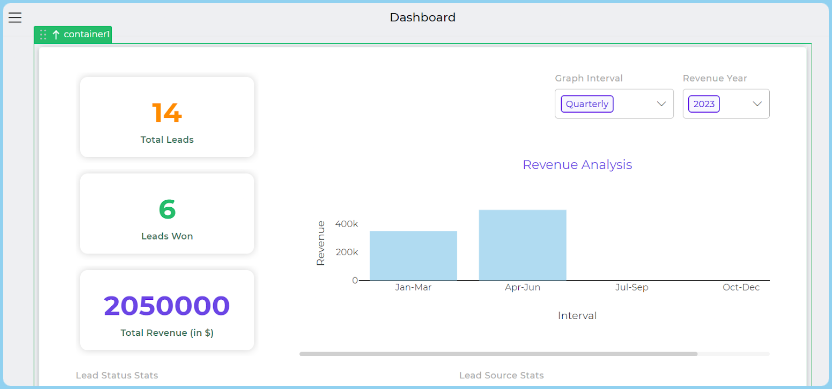 8. We went ahead and created a new screen, dropped some display UI controls like ‘Dashboard’, ‘Plotly-enabled Charts’ and more to create a dashboard view for our sales leads captured. The process to pull data for each of the UI components remains the same as above.