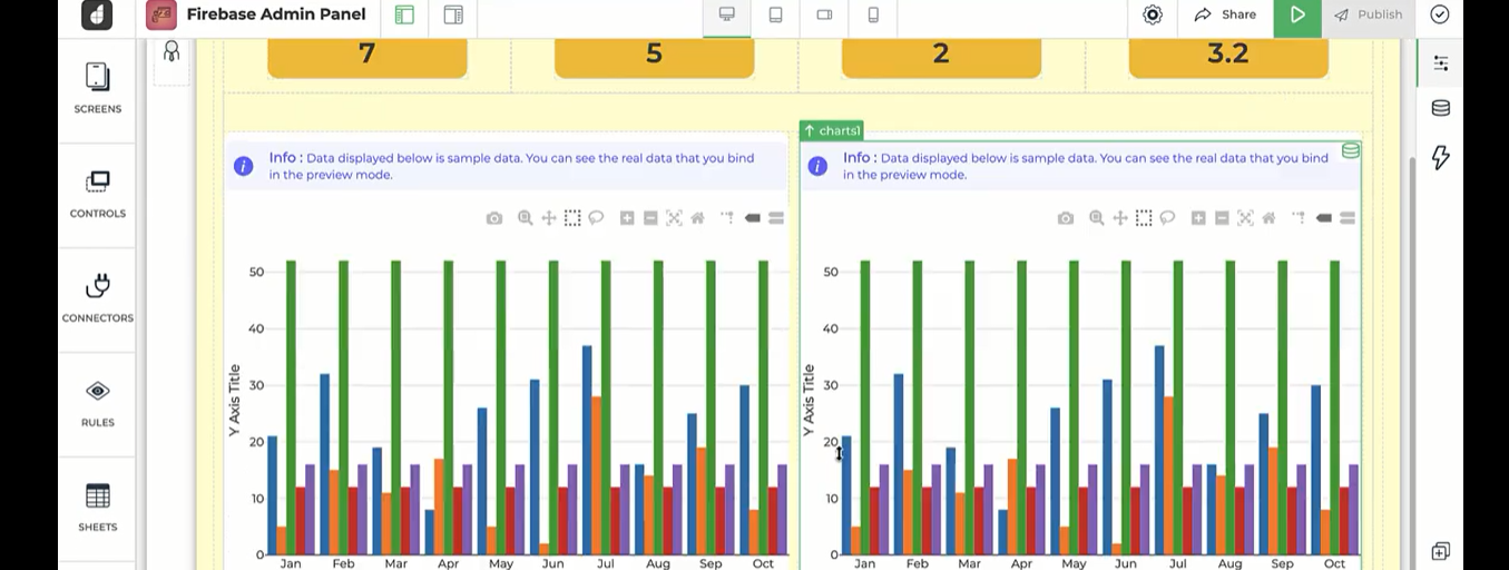 DronaHQ offers an intuitive drag-and-drop UI editor to design front ends, advanced pre-built UI components including pre-built UI components, Plotly charts, Kanban, tables, detail view etc. Create highly responsive and intuitive MongoDB charts that can be used across devices including android, iOS and the web. Sign up now for a free trial!