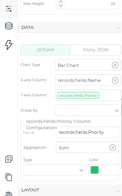 After connecting your MongoDB Database to DronaHQ, you can write queries and transform your data using JavaScript to use as the data source for charts.