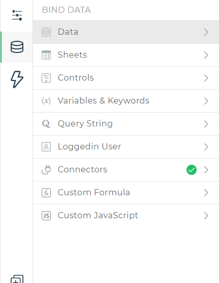 Head over to the ‘bind data’ section. Go to ‘options’ and select ‘connectors’ and choose ‘MongoDB’ and configure the connector. Give an appropriate name and test and finish it.