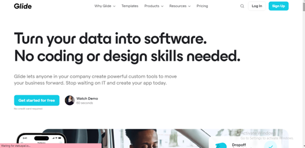 Glide is a no-code web app builder that offers a powerful editor to visually build apps and leverages Google Sheets to store the data. Users have full control of their data in a visual interface. Glide also gives a lot of components to work with, such as a calendar, a map view, a user list, and even advanced things like a chat interface. Glide allows users to turn their data into web and mobile applications using their pre-built templates in minutes.