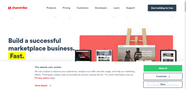 ShareTribe is a no-code online marketplace platform optimized for building two-sided marketplaces like eBay or Airbnb. ShareTribe allows users to build and customize their marketplace using ShareTribe Flex or launch their MVP using ShareTribe Go.