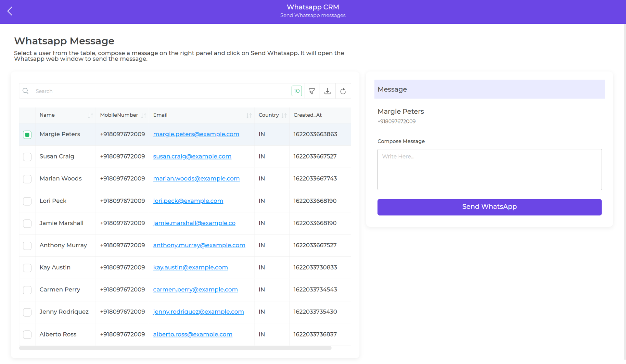 You can store sales funnels and customer data—user behavior, how long a customer has been with your business, purchase records, and notes on sales interactions. You can use this to optimize your sales and marketing processes and improve customer service across your organization. Check out this ready template of WhatsApp CRM by DronaHQ!